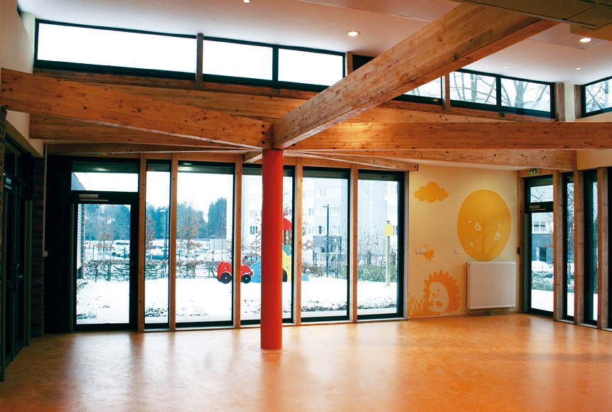 Le programme prévoyait de réhabiliter une crèche construite dans les années 70 et de construire une extension offrant d’avantage d’espace aux employées et aux enfants de l’établissement. Le projet proposa alors de créer deux extensions en intégrant les réglementations d’ERP, de PMI et les contraintes fonctionnelles des utilisateurs. L’enjeu étant d’ouvrir les pièces, permettant de faciliter la surveillance des enfants et d’apporter de la lumière naturelle au centre du bâtiment. La première extension abrite une grande salle de jeu largement vitrée, offrant des vues sur le jardin et sur l’aire de jeu extérieure. La conception de l’extension joue avec les limites entre intérieur et extérieur : la salle de jeu se situe dans le jardin. La structure en ossature bois (poteau/poutre) rappelle les cabanes de notre enfance. La seconde extension abrite trois dortoirs qui se fondent dans la trame existante de l’édifice.
