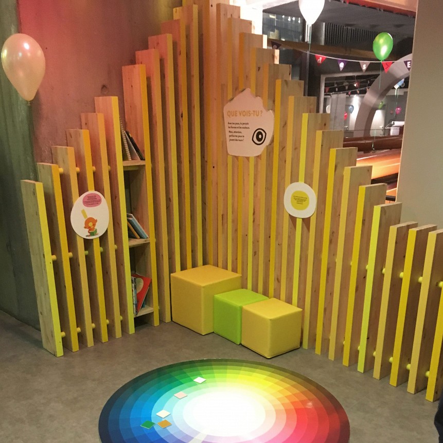 Le nouvel espace Petite Enfance est donc à l’image des volontés du Forum départemental des Sciences;un espace accueillant, riche en couleurs et en découvertes !
