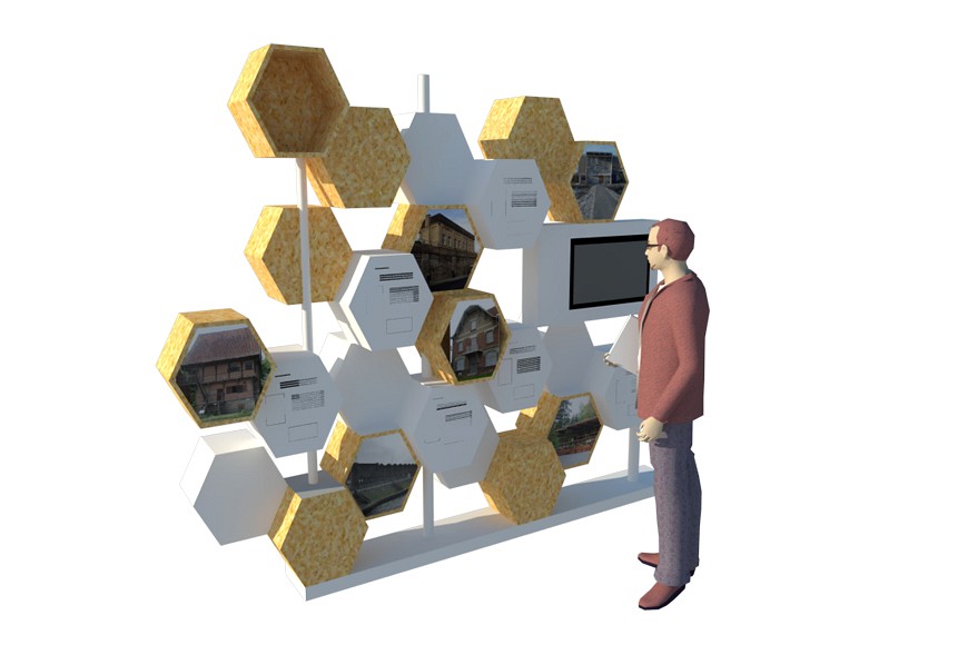 La mission consiste donc à concevoir une charte scénographique fédérant les différents partenaires du projets (Cd2e, BTP SCOP, BSK CIC, GreenSpec, Cluster Eco-construction, De Groene Stee, ACORP, Globe 21, Agrodome, HWK, VIBE ) et répondant spécifiquement aux besoins de chacun.