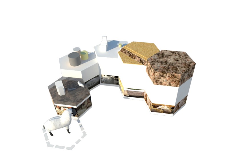 La scénographie sera donc modulaire permettant l'adaptation aux différents lieux d'exposition de nature très varié. Elle propose d'utiliser l'image de la molécule et sa représentation comme charte scénographique.