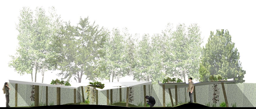 MAÎTRE D'OUVRAGE : festival de Métis / MISSION : conception et réalisation d'un jardin / SITUATION ACTUELLE : concours novembre 2010 / SURFACE : 200 m² / EQUIPE : collectif Mooslin (collectif artistique) Nicolas Menu (architecte paysagiste)