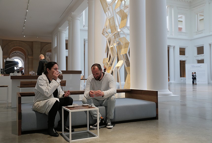 MAITRISE D’OUVRAGE : Palais des Beaux Arts et Ville de Lille / EQUIPE : Atelier Smagghe (architecte mandataire), Les Produits de l'épicerie ( Graphisme), Jacky Lautem (éclairage), Axiome (B.E.T.) / Réalisation : Chloroform, Loft Lille, Meubles Rouchon, Dacryl./ (c) Photos : Palais des Beaux-Arts de Lille - Jean-Marie Dautel/ MISSION : Aménagement de l'Atrium de Palais des Beaux Arts / SURFACE : 1500 m² / SITUATION ACTUELLE : livré en Juin 2017